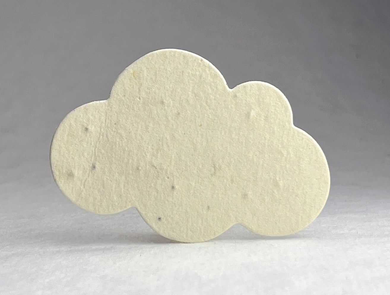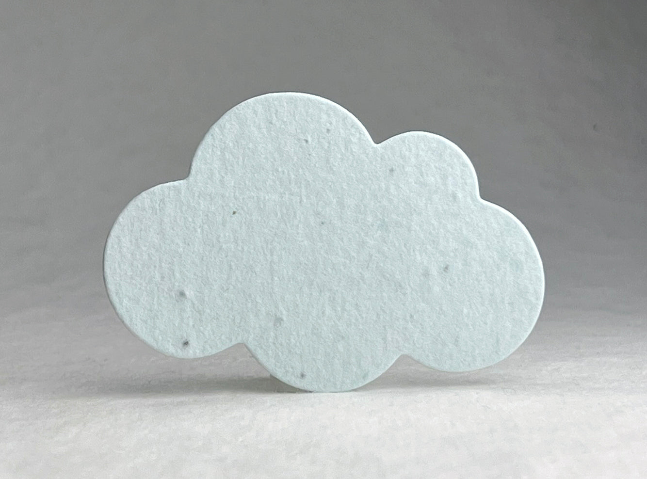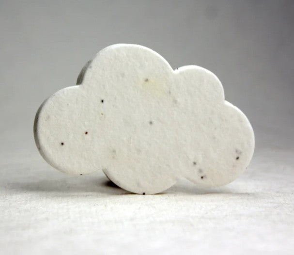 Set of 24 large cloud shaped seed paper with your personalization printed in black. 100% tree free cotton paper. Will sprout flowers if planted.