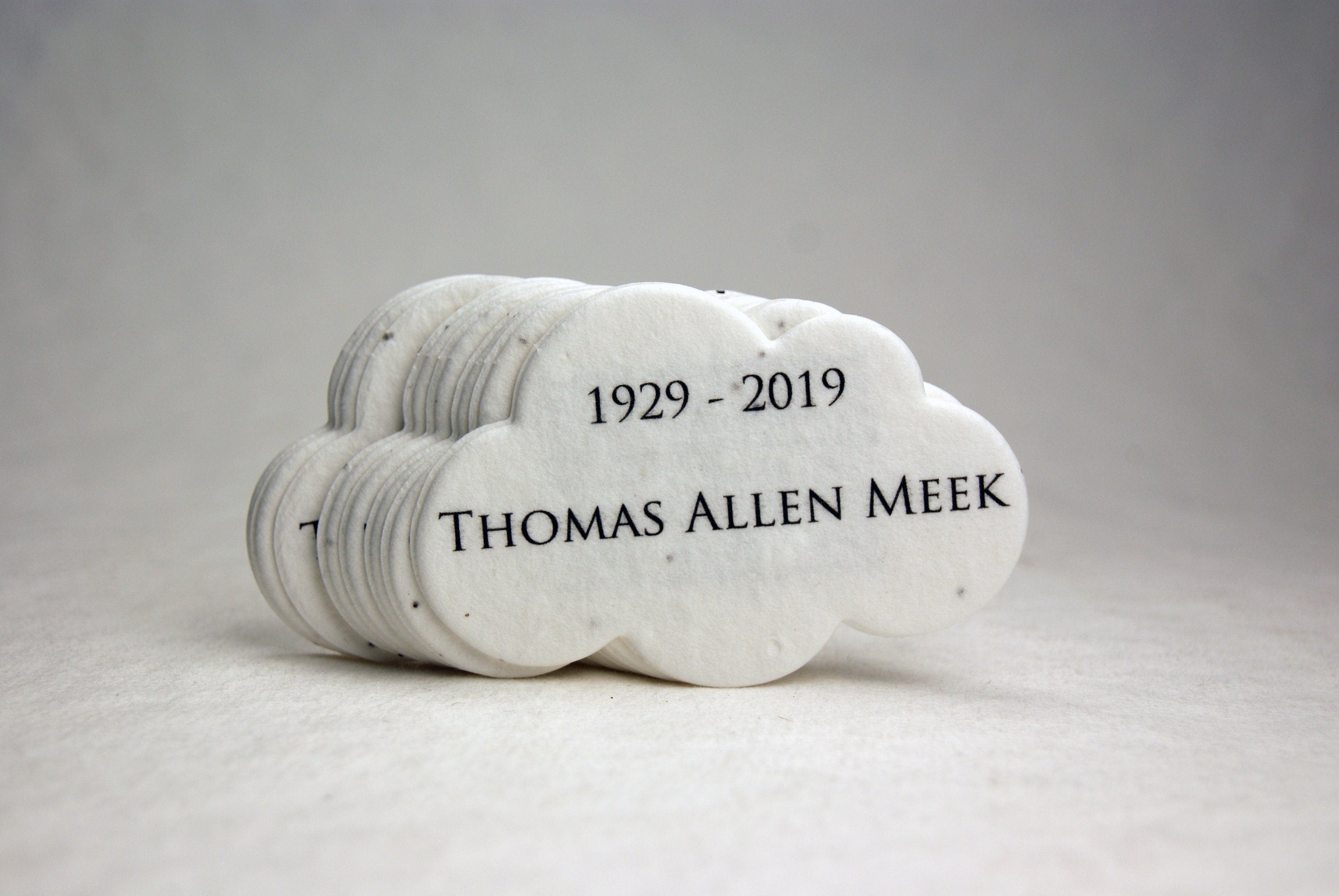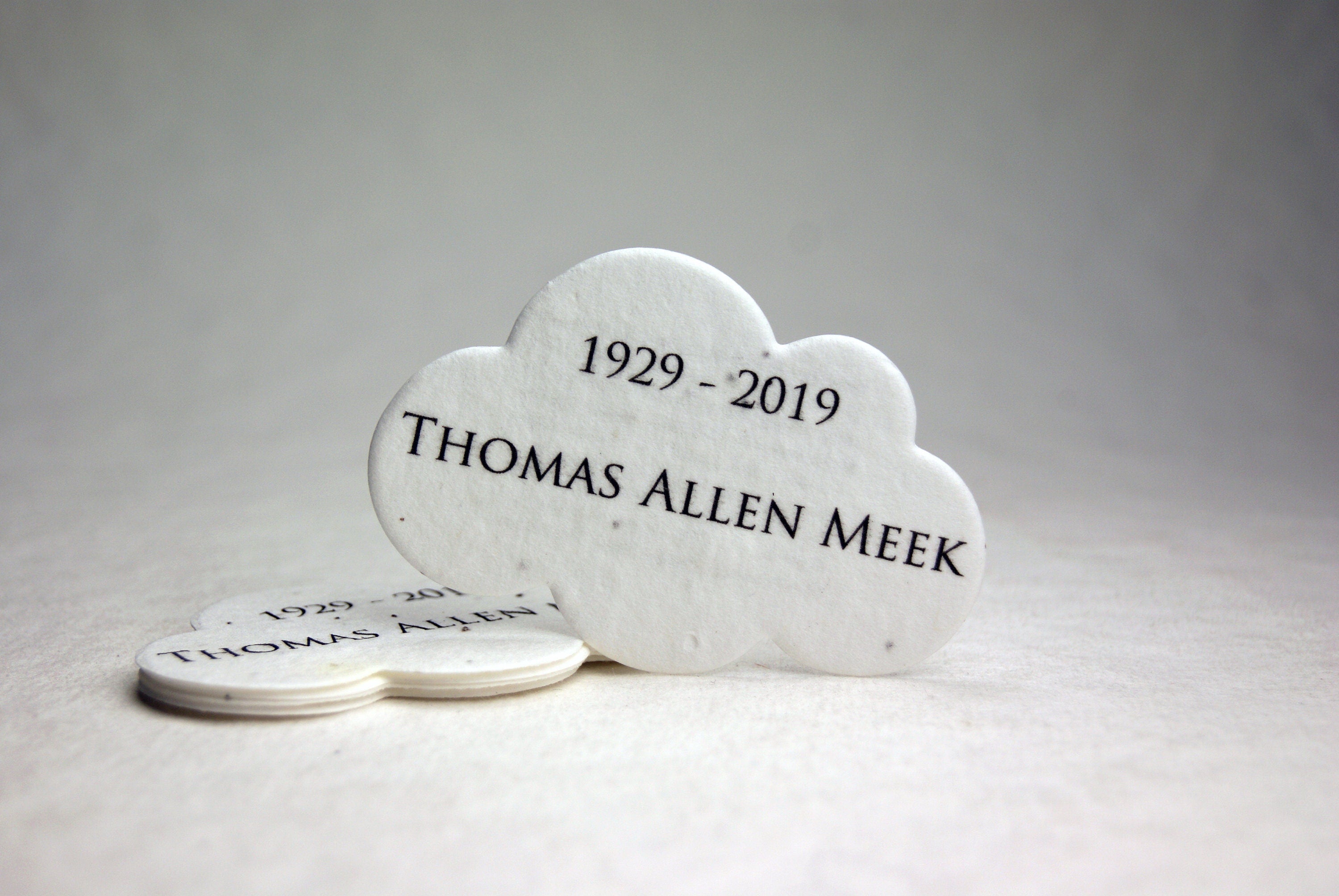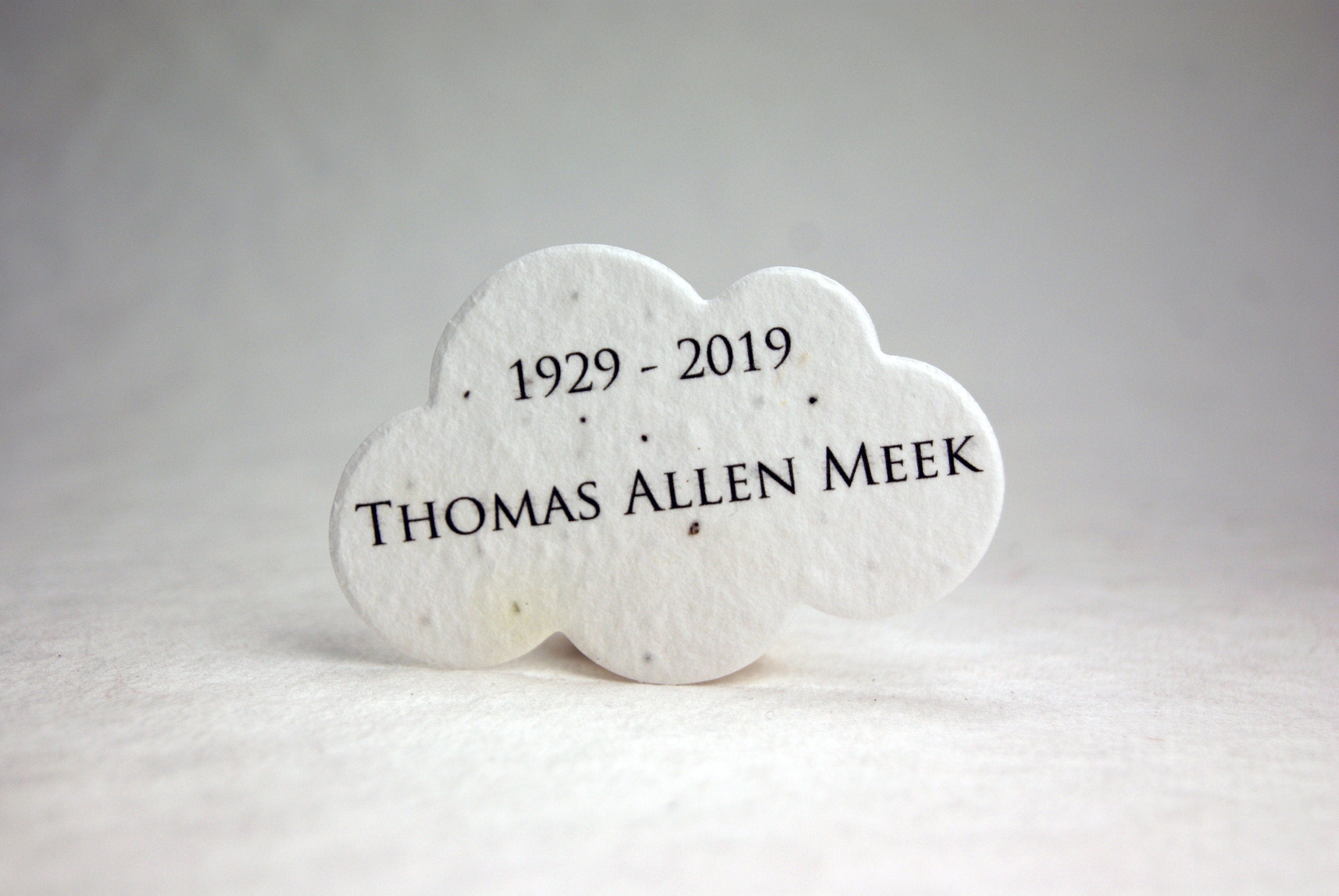 Set of 24 large cloud shaped seed paper with your personalization printed in black. 100% tree free cotton paper. Will sprout flowers if planted.