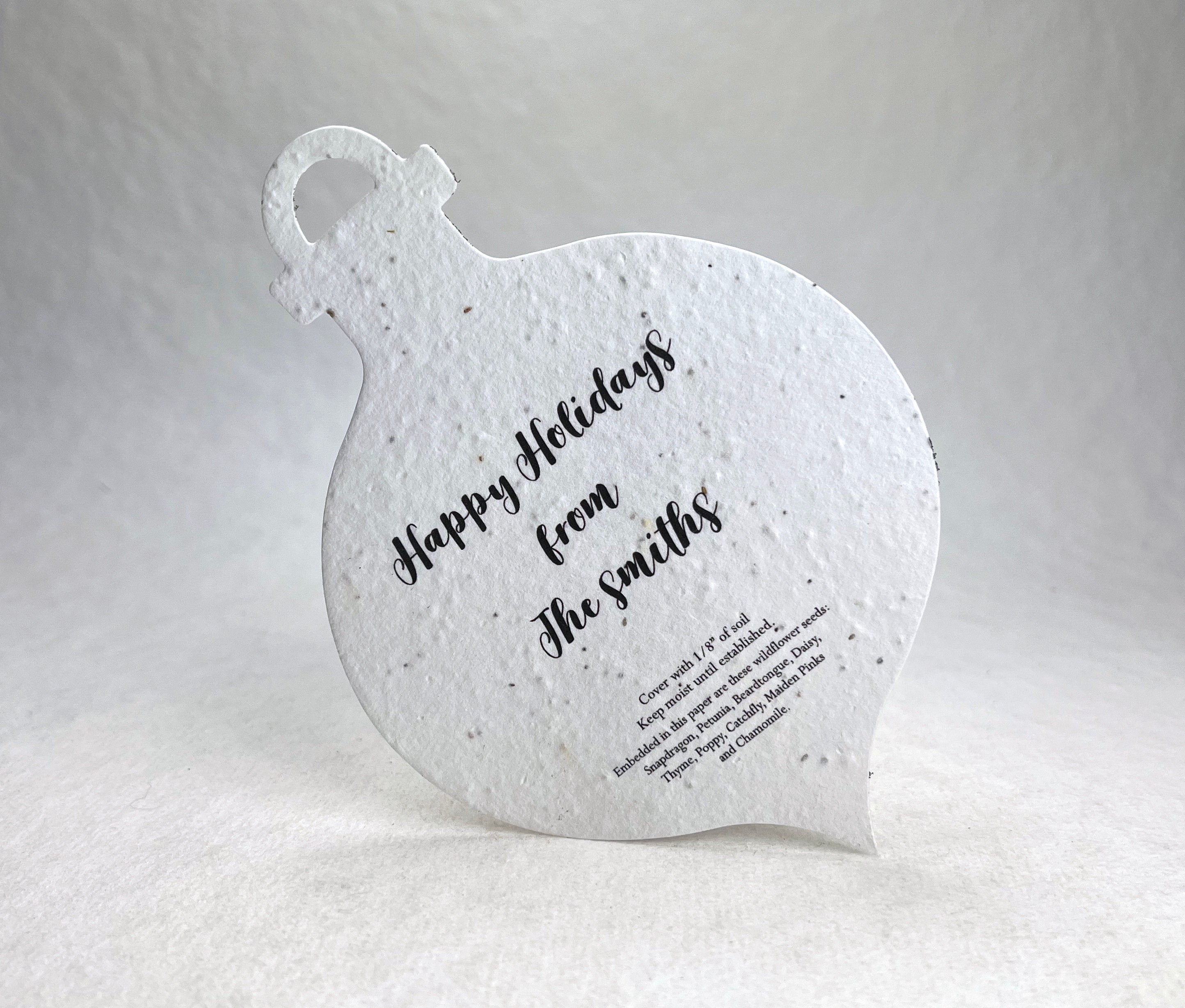 Personalized Handmade Seed Paper Holiday Ornament Cards - 4.75" x 7" - Set of 8 with Recycled Envelopes
