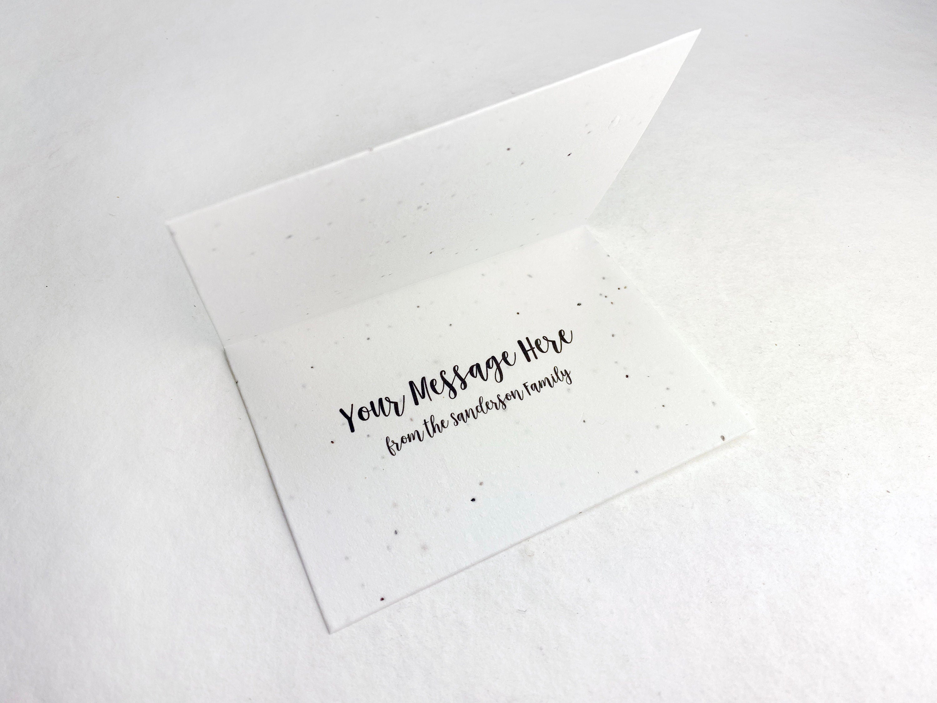 These cards will be printed with the message you enter exactly. No proof is generated and no further customization is included in this listing. Please contact us if you are interested in fully customized cards.