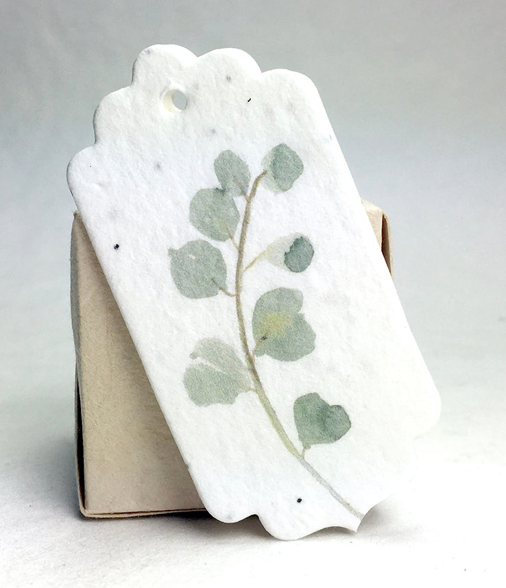 36 or 96 tag shaped seed paper die cut gift/favor/product tags. 100% tree free cotton handmade paper. Will sprout flowers if planted. Your message will be printed exactly as entered. These ship within 72 hours.